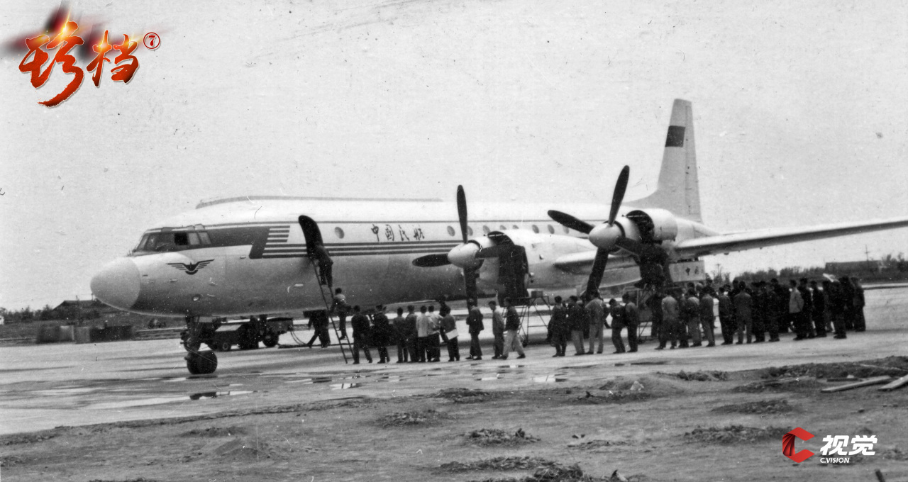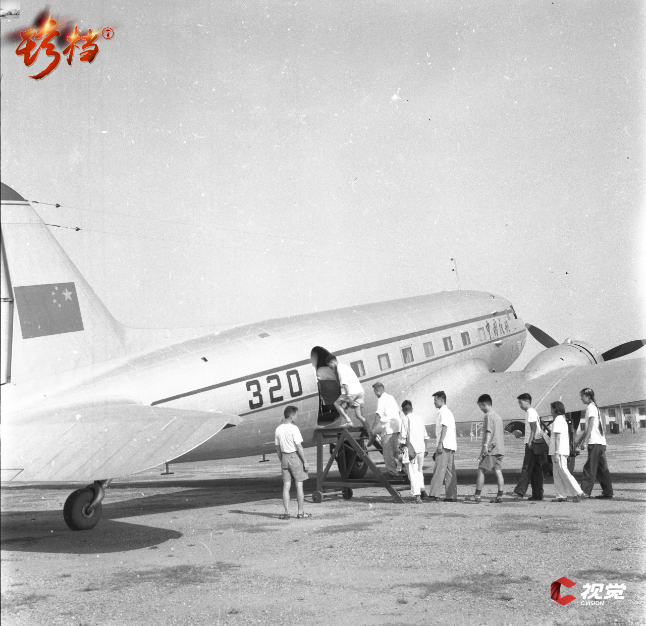 1960年,成都双流机场,乘客通过简陋的梯子登机。