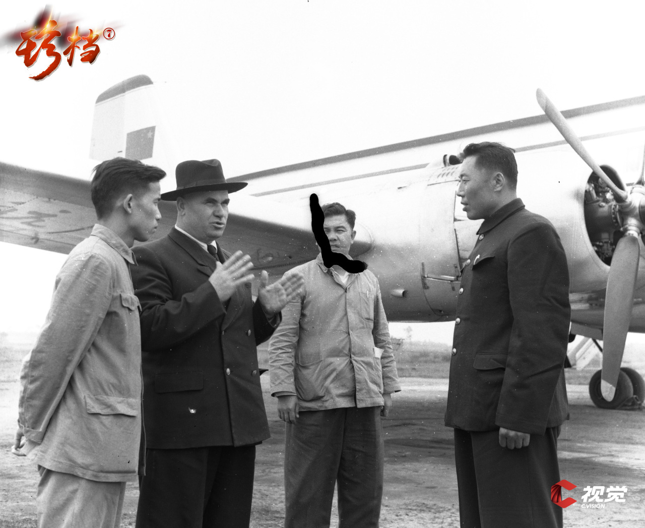 1959年11月4日,苏联飞行专家巴拉洛夫同志与我省民航飞行工作人员进行高级飞行技术驾驶交流。