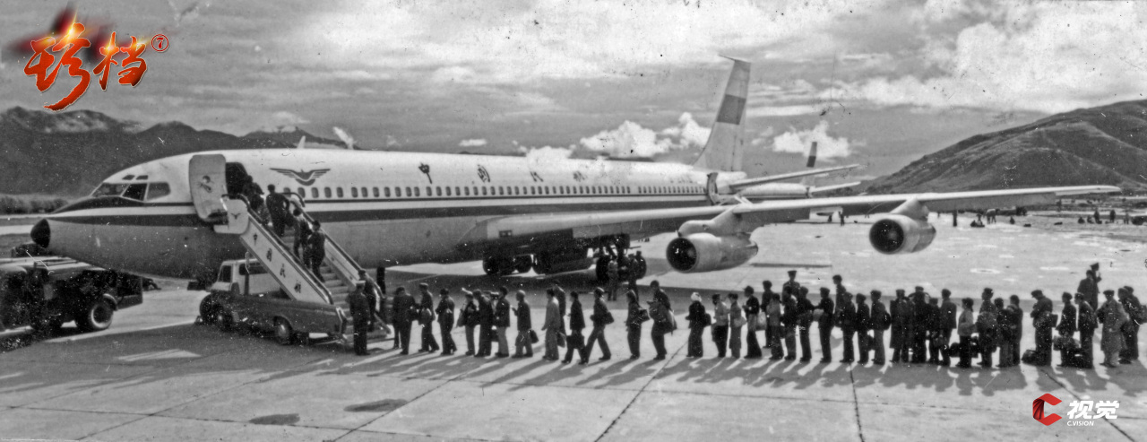 1989年,旅客们正在拉萨机场登机飞往成都。民族团结的“金桥” 。成都——拉萨航线,自1965年正式开通以来,一直保持安全,优质服务记录。