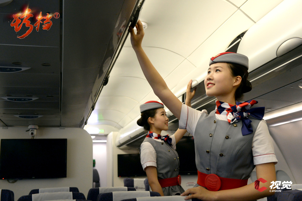 2015年,全国20对“95后”双胞胎共同追逐航天梦。四川西南航空专修学院A330客舱服务实训室,一对双胞胎在进行服务训练。
