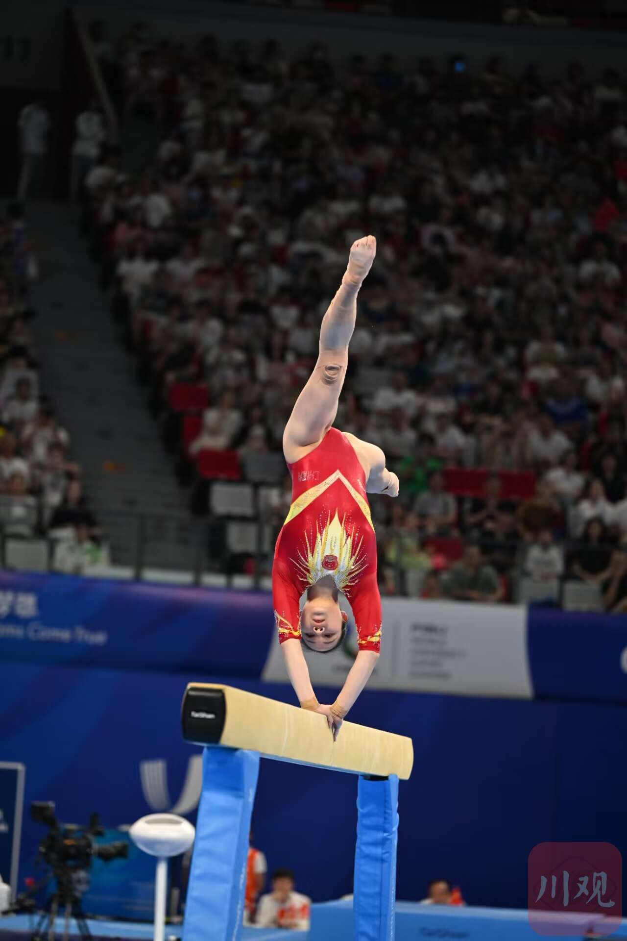 8月5日,成都大运会体操项目女子平衡木决赛,中国选手欧钰珊完美发挥,以14.366分夺得金牌;罗欢以13.966分摘银。日本选手SAKAGUCHI Ayaka拿到铜牌。