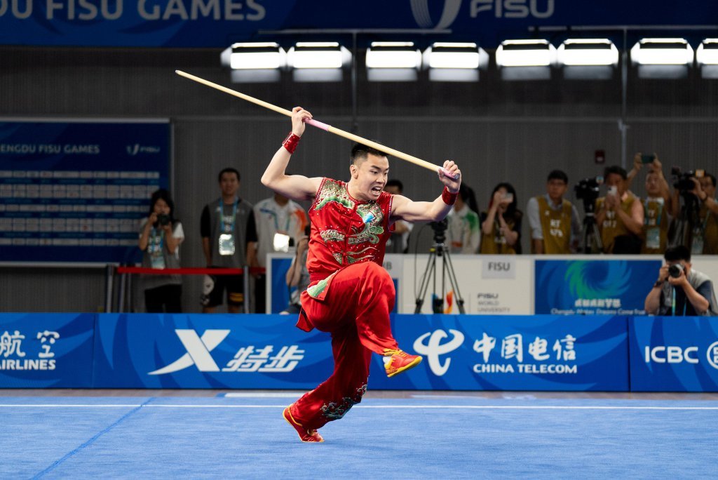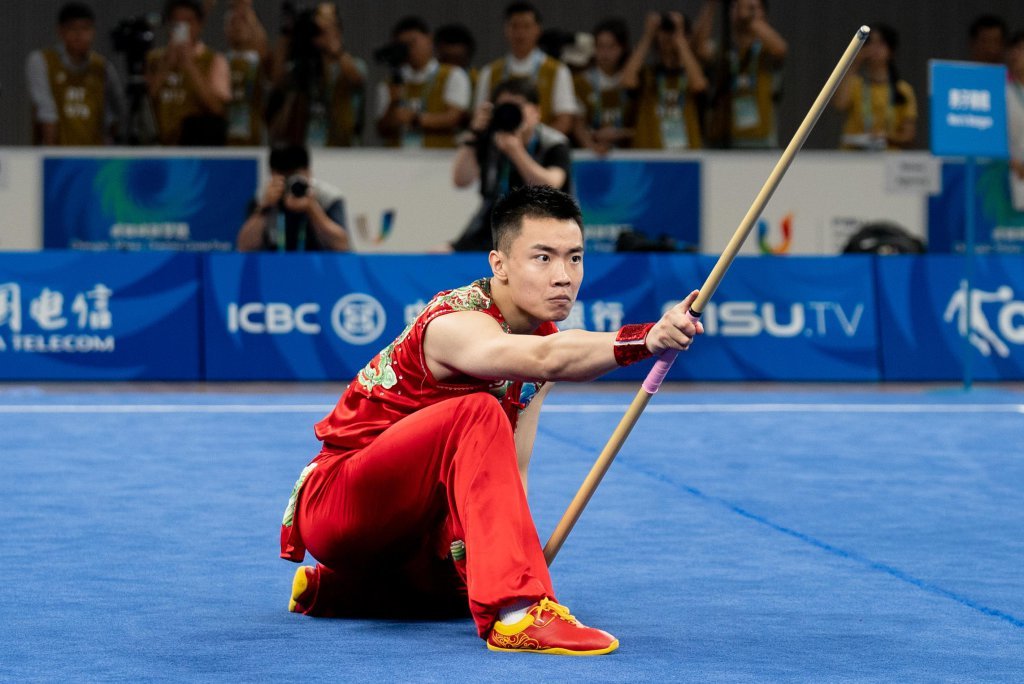 曹茂园在成都大运会武术项目男子南拳比赛中 (新华社供图)