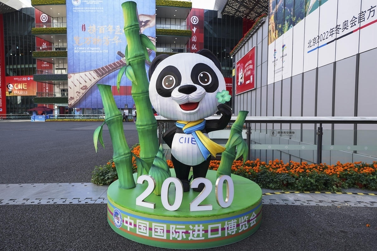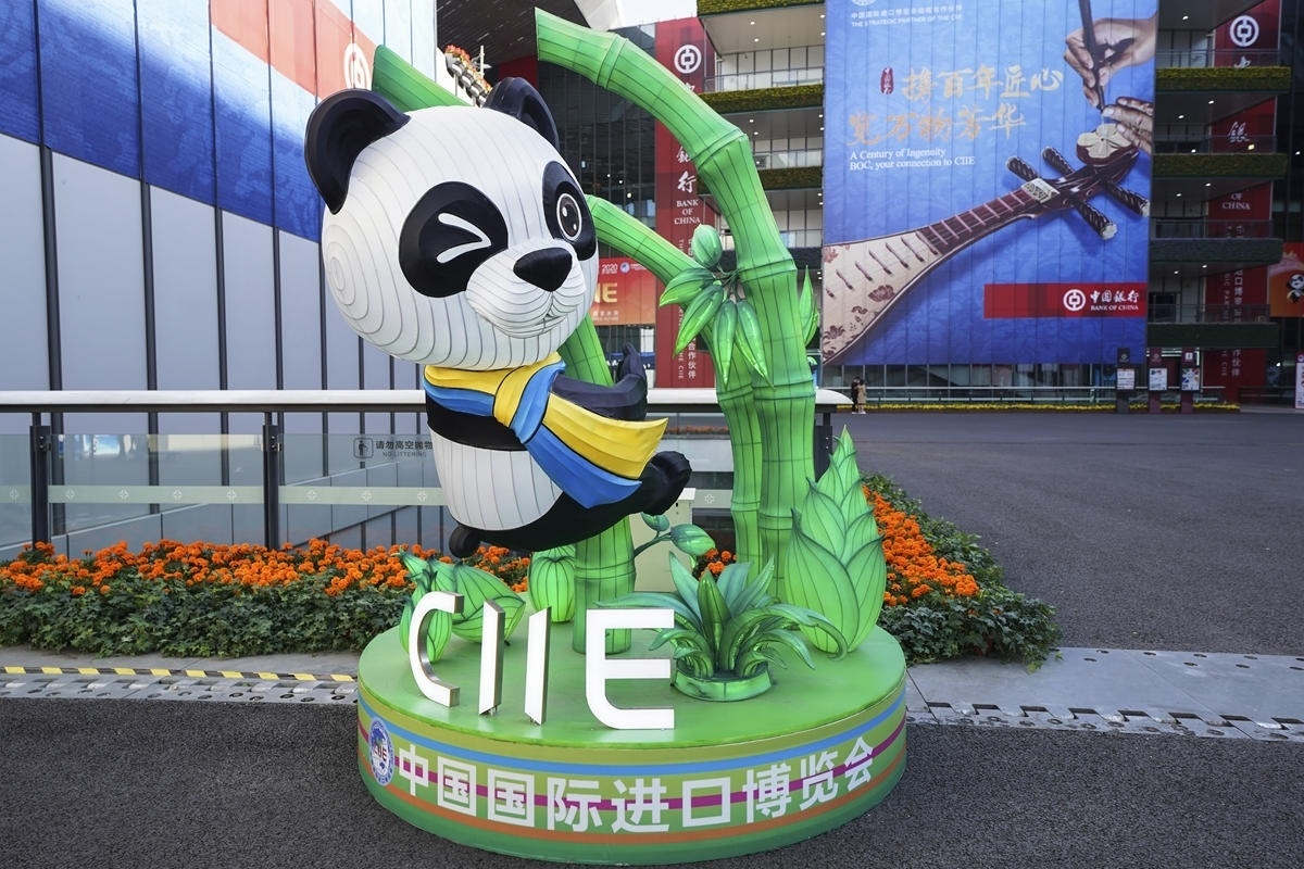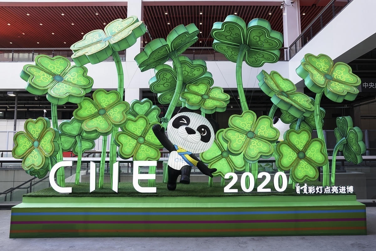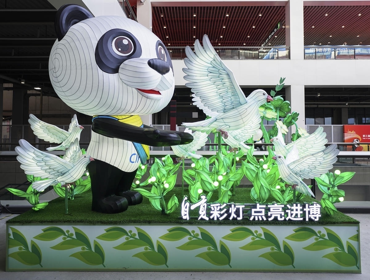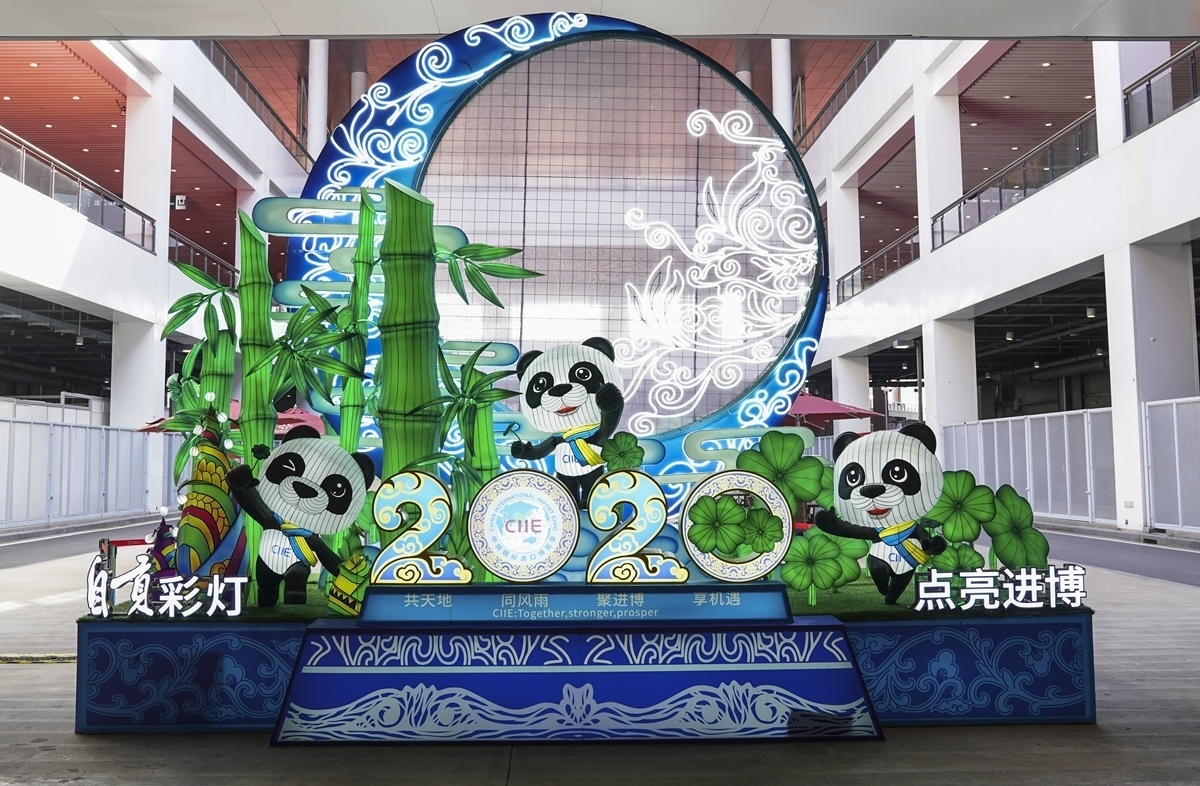 第三届中国国际进口博览会现场的多处彩灯为展会增添了色彩与魅力。