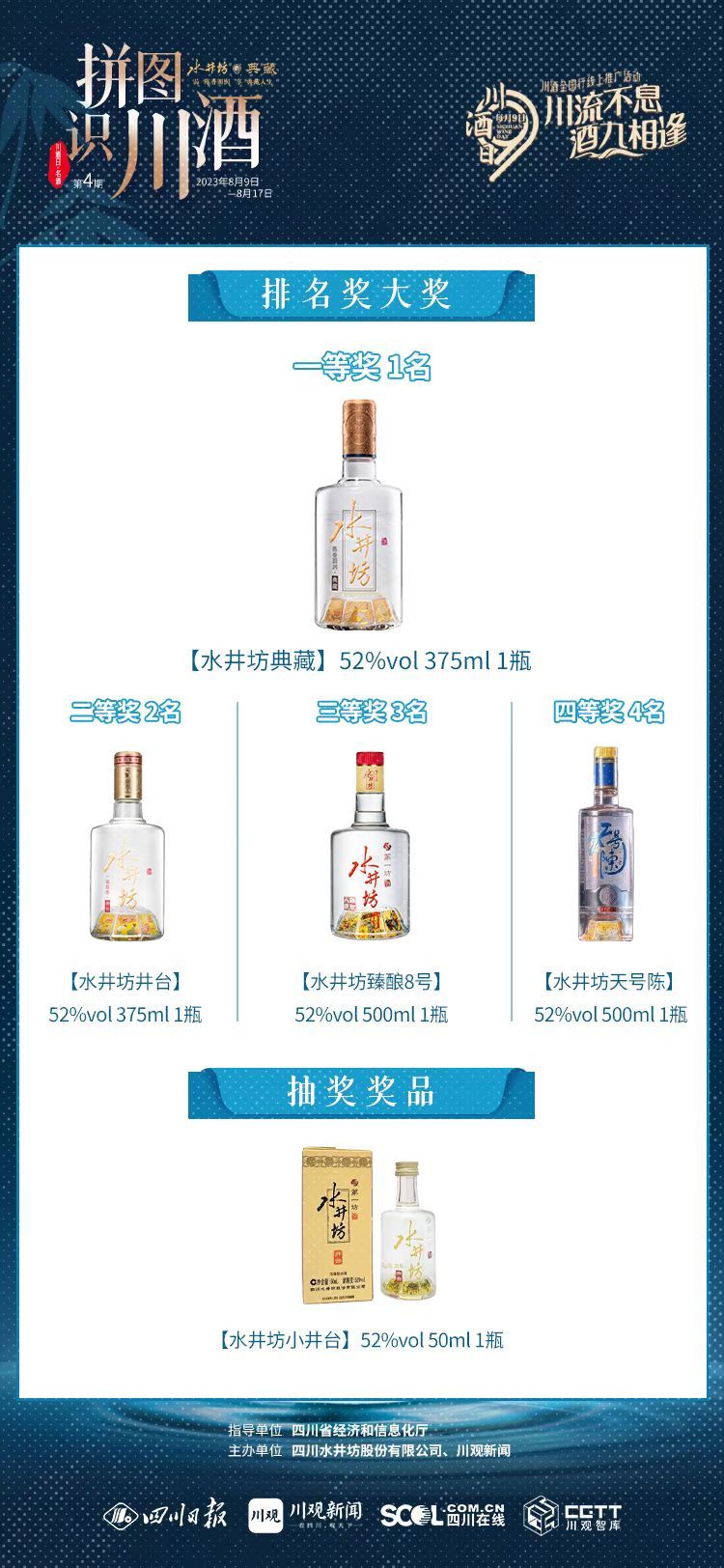 “拼图识川酒”为年度系列活动,持续时间为2023年5月至2024年4月,每月9日上线。活动期间,用户参加每期活动均可获得活动积分;第1—11期活动积分,按比例计入总排行榜。
