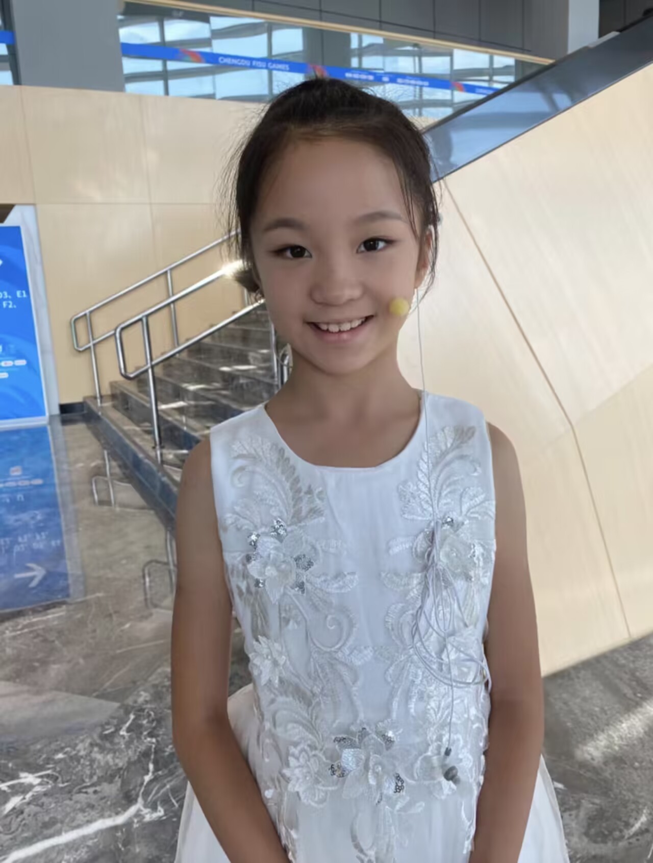8月8日晚,在成都第31届世界大学生夏季运动会闭幕式上,一位小女孩致的一段双语感谢词给人留下了深刻印象。据悉,她是成都市草堂小学二年级的学生程千芮,今年8岁。
