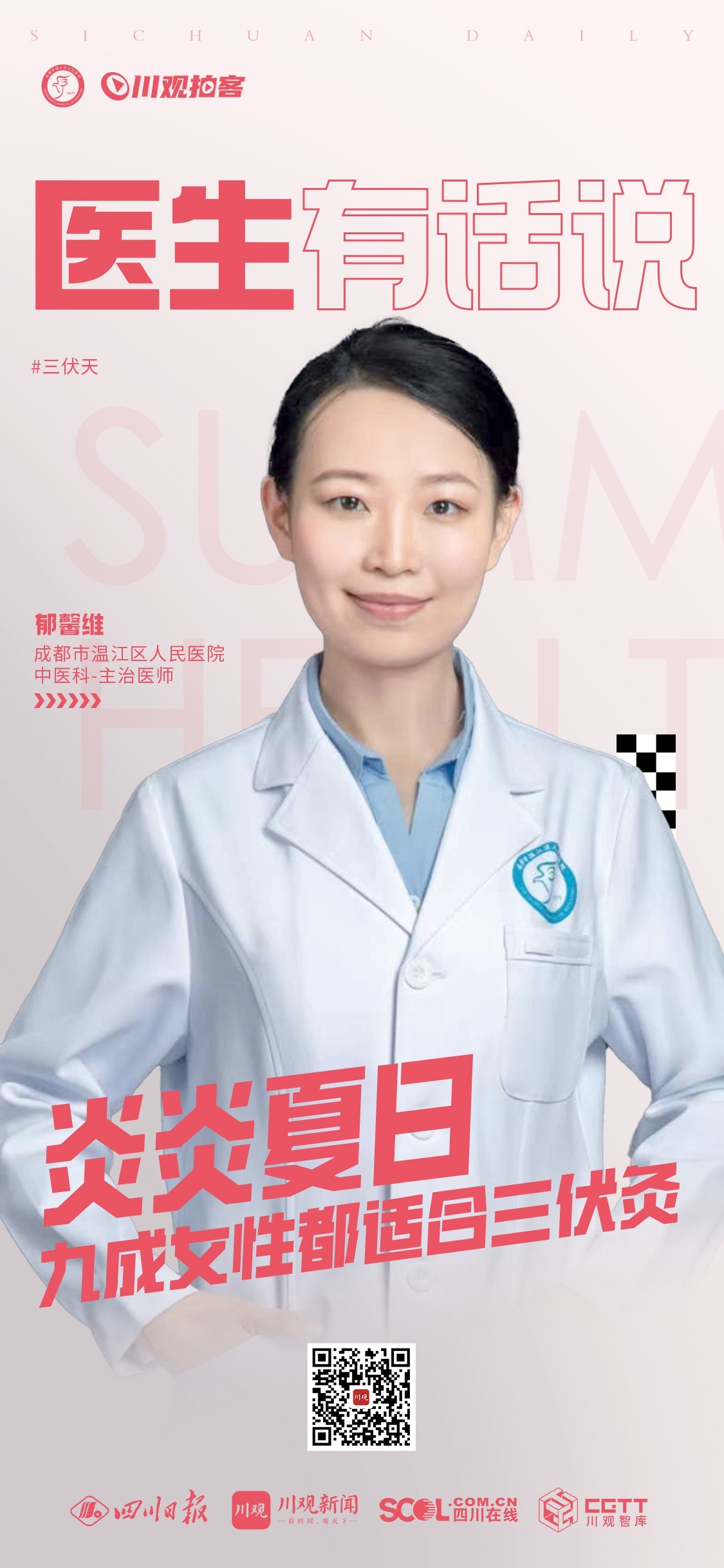 今天,来自成都市温江区人民医院中医科的主治医师郁馨维,就跟大家聊一聊女性通过三伏灸进行调理的话题。