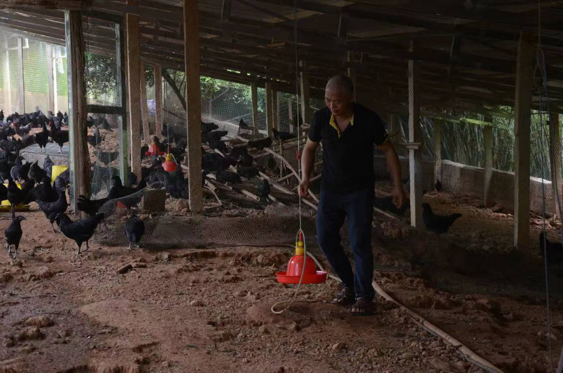 上马镇“能人”古帮泽正在喂鸡。蔡惠兰摄