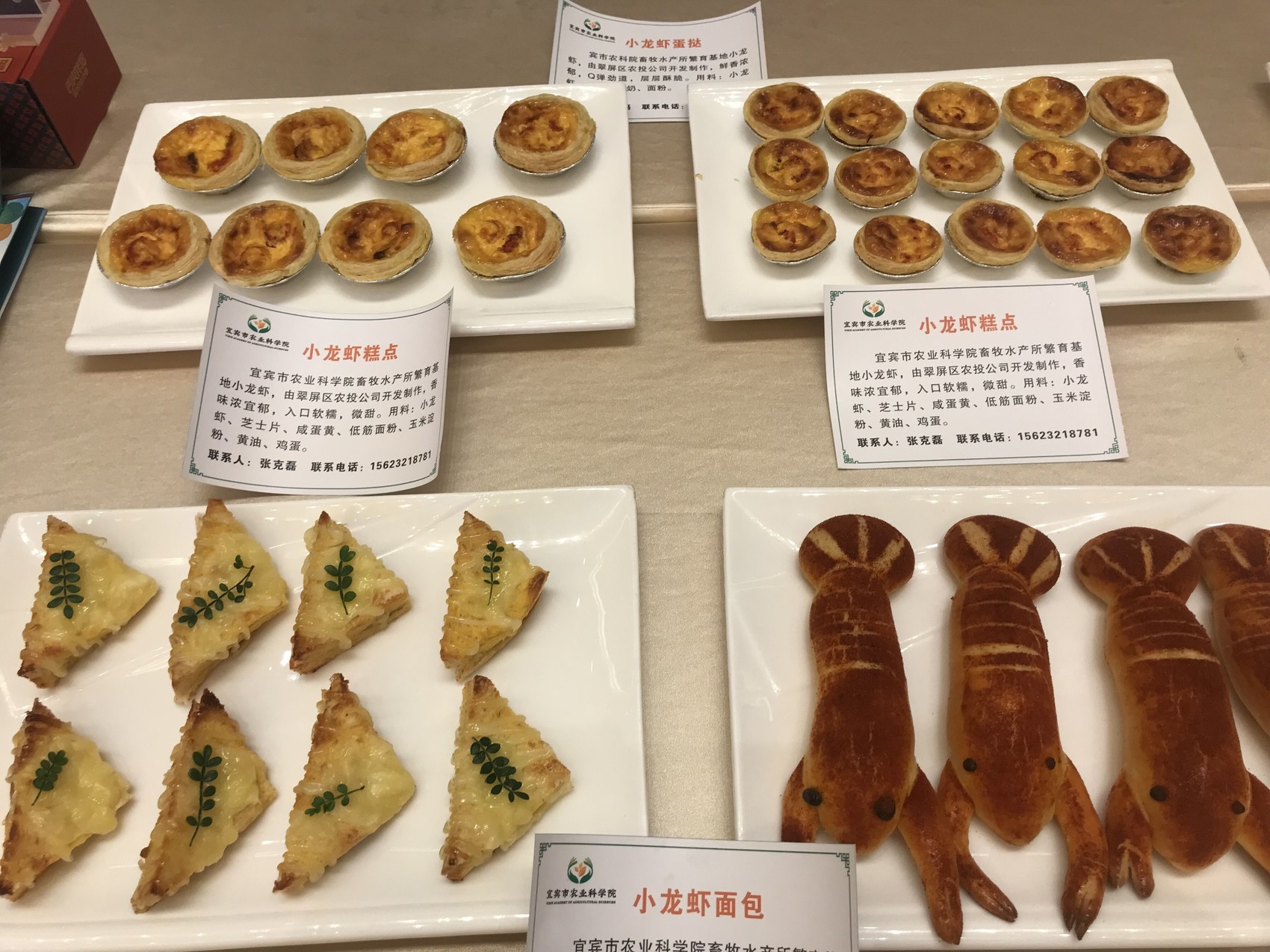 “水产品一般是鲜销的多,加工的产品少。近年来,宜宾市委市政府坚持农业产业‘二产带动,一二三产联动’,我们就有了小龙虾糕点的创意。”宜宾市农业科学研究院畜牧水产研究所所长周力介绍说,“我们把这个创意告诉翠屏区农业投资有限公司,结合宜宾市省级小龙虾良种场以及宜宾众多养殖户的原料优势,开发出了小龙虾蛋挞、小龙虾三明治等糕点,优选精品小龙虾,将小龙虾完美融入。小龙虾糕点比普通糕点增加25%的附加值。”