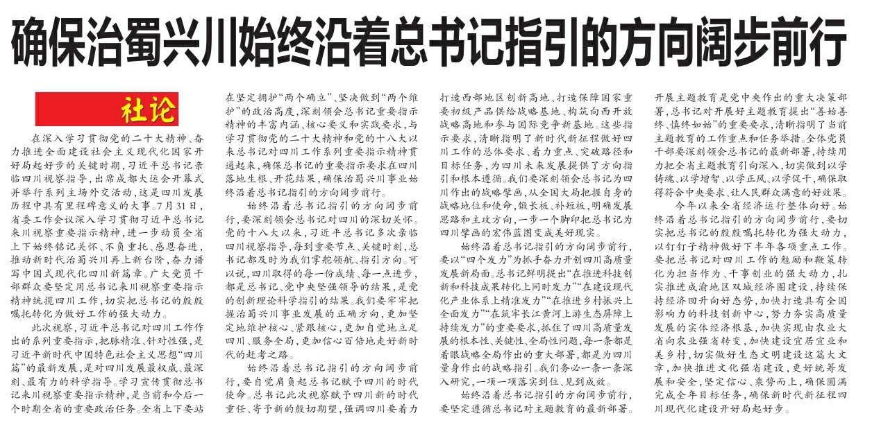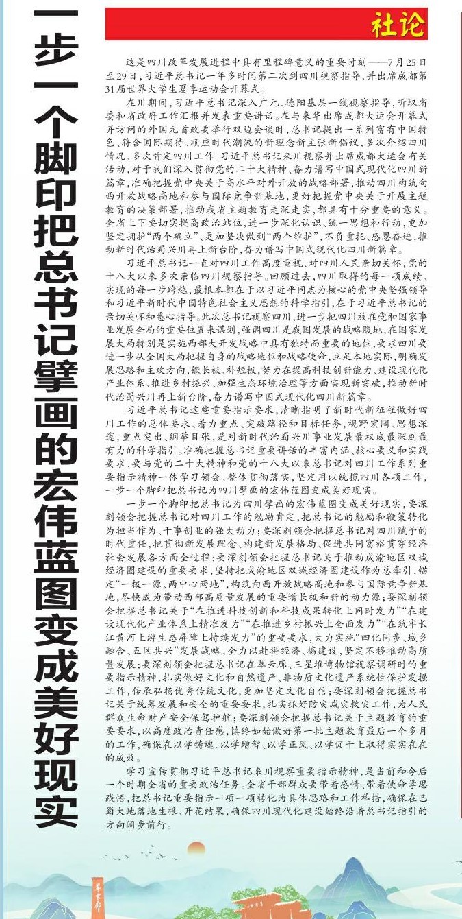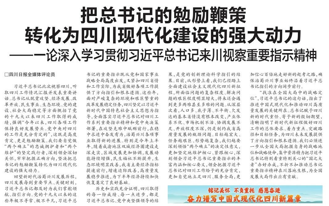 四川日报社论:一步一个脚印把总书记擘画的宏伟蓝图变成美好现实