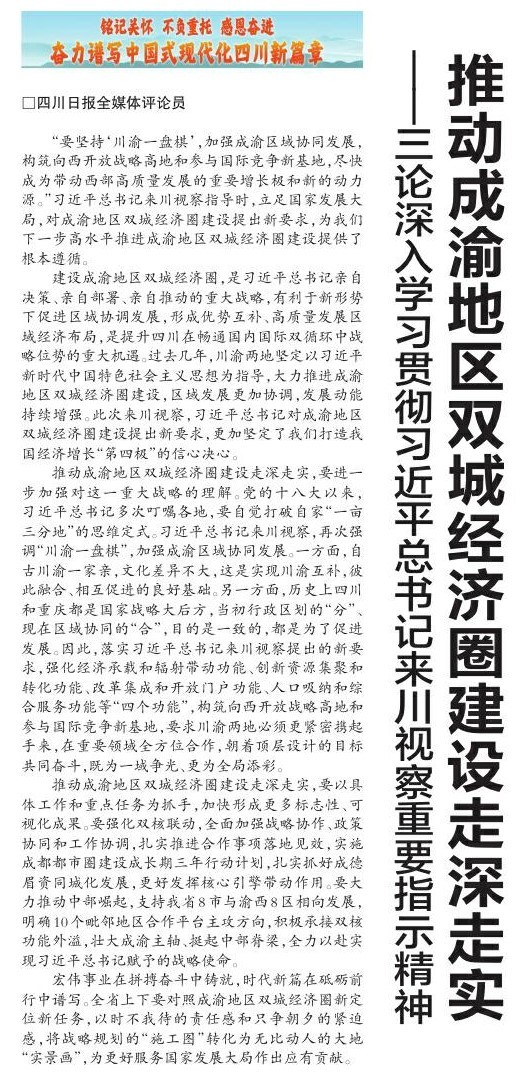 推动成渝地区双城经济圈建设走深走实——三论深入学习贯彻习近平总书记来川视察重要指示精神
