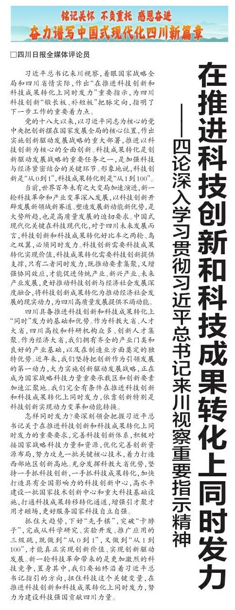 在推进科技创新和科技成果转化上同时发力——四论深入学习贯彻习近平总书记来川视察重要指示精神