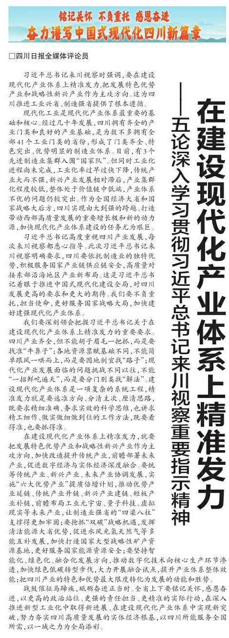 在建设现代化产业体系上精准发力——五论深入学习贯彻习近平总书记来川视察重要指示精神