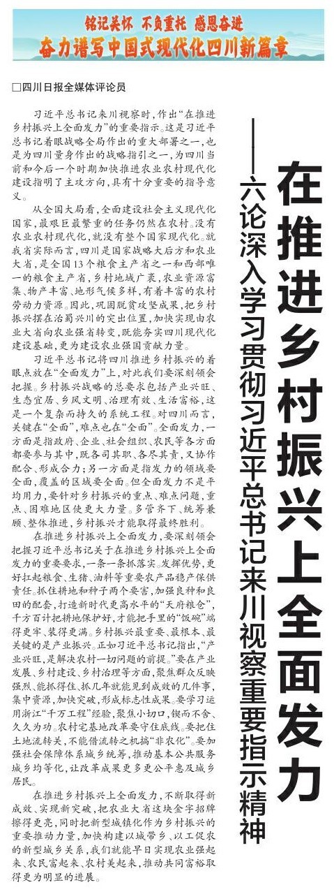 在推进乡村振兴上全面发力 ——六论深入学习贯彻习近平总书记来川视察重要指示精神