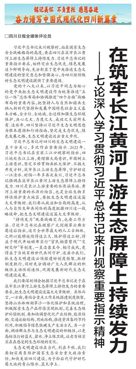 在筑牢长江黄河上游生态屏障上持续发力——七论深入学习贯彻习近平总书记来川视察重要指示精神