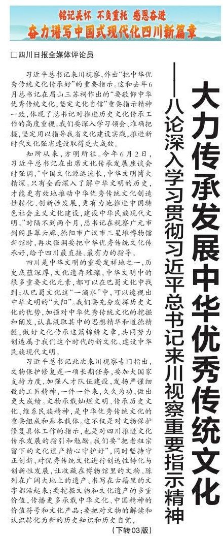 大力传承发展中华优秀传统文化 ——八论深入学习贯彻习近平总书记来川视察重要指示精神
