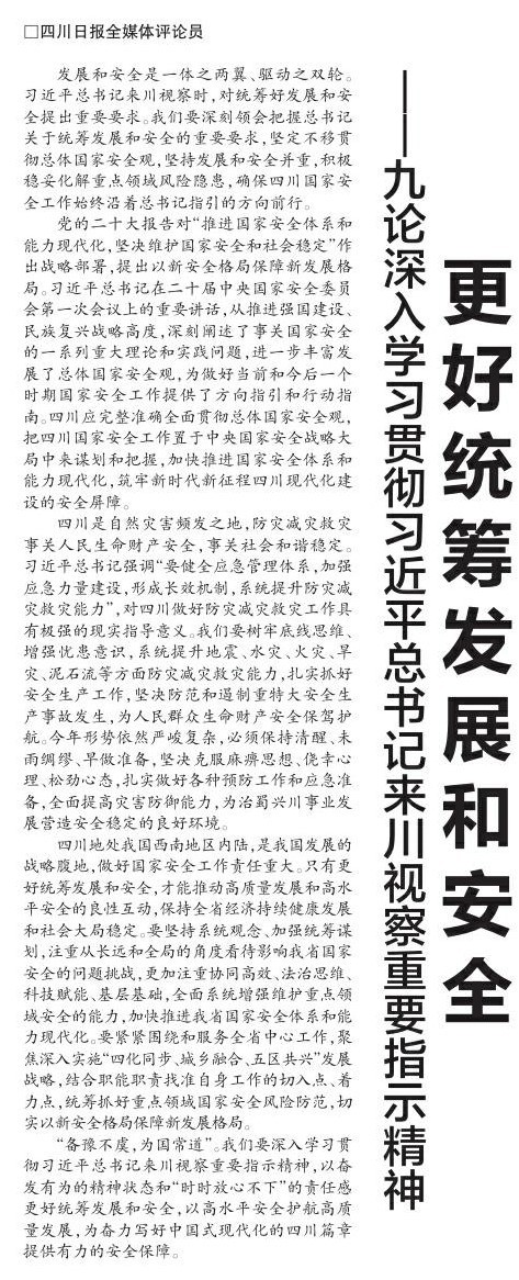 更好统筹发展和安全——九论深入学习贯彻习近平总书记来川视察重要指示精神