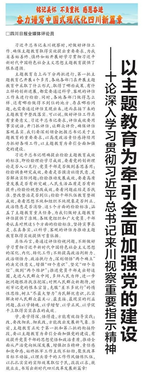 以主题教育为牵引全面加强党的建设——十论深入学习贯彻习近平总书记来川视察重要指示精神