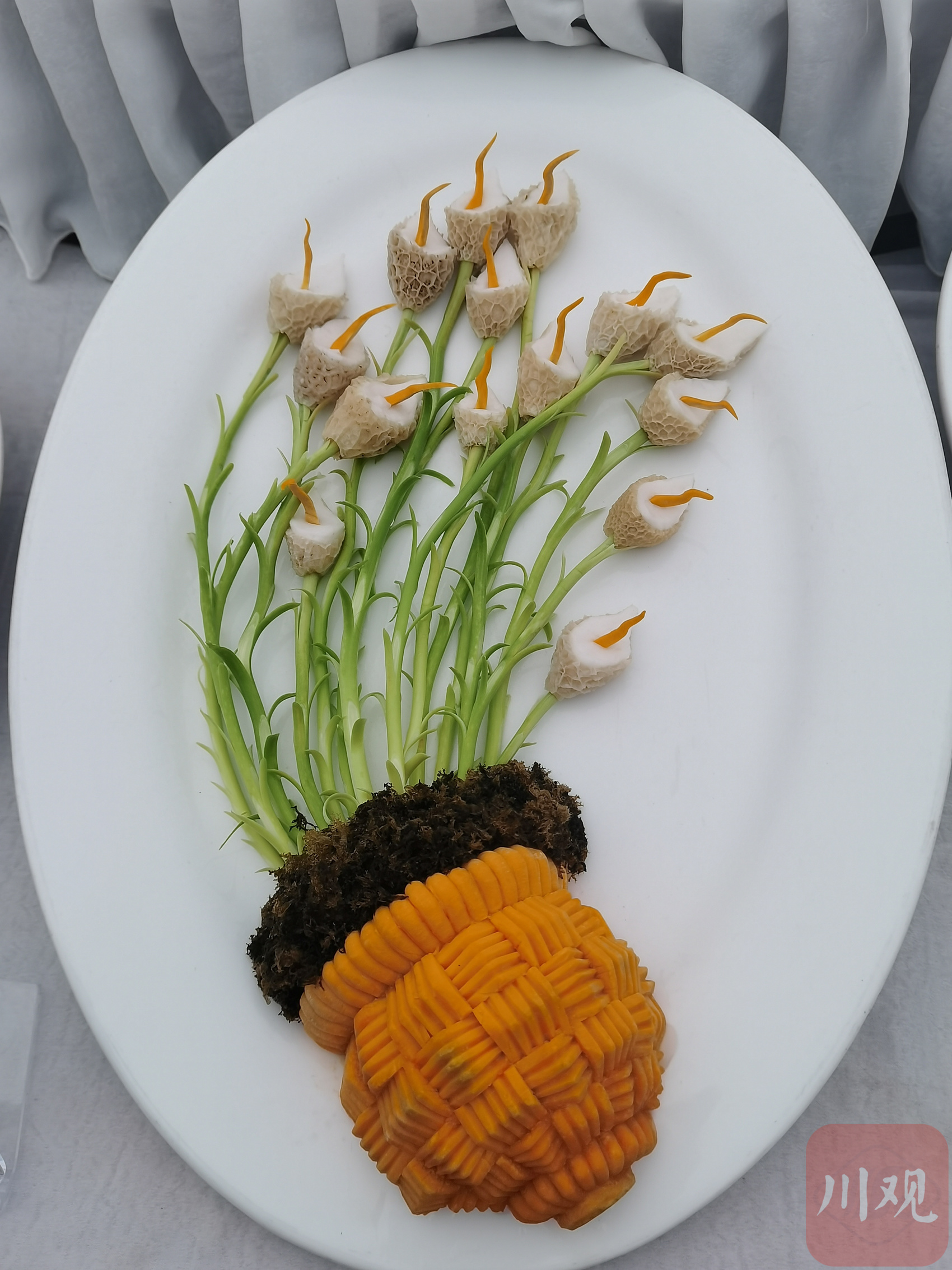 全竹宴的食材核心是长宁独有的“菌中皇后”——长裙竹荪。竹荪是寄生在枯竹根部的一种隐花菌类,在适宜条件下,会在菌柄顶端有一围细致洁白的网状裙从菌盖向下铺开,其过程宛如一个穿着雪裙的“仙子”,极为好看。竹荪除富含各种人体必须的氨基酸外,更是美味可口的特色菜肴原料,不论是鲜辣爽口的泡椒竹荪蛋,还是鲜美浓厚的竹荪鸡汤,都为八方游客所喜好。
