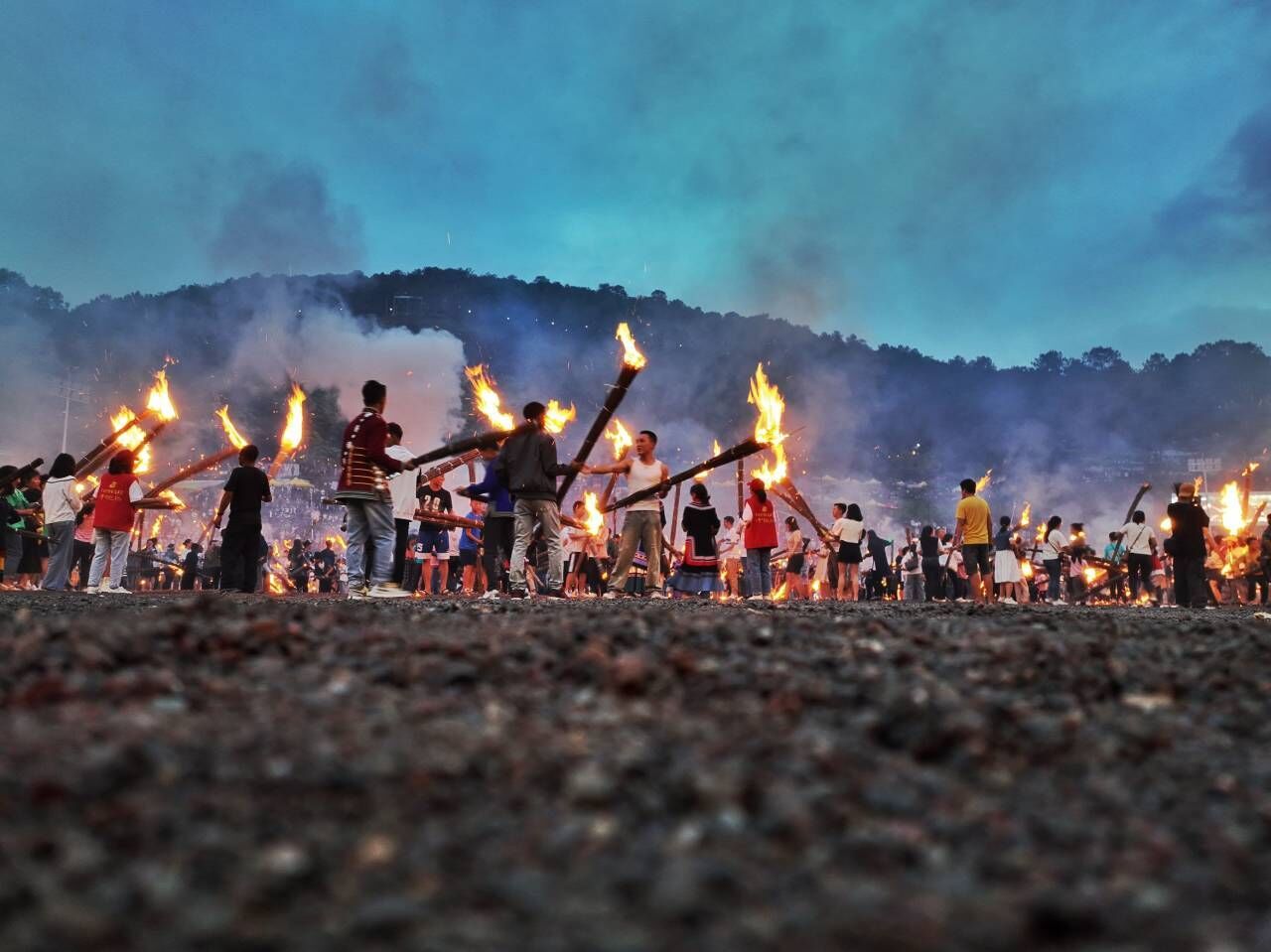 盛夏之夜,燃烧的火把照亮凉山州的大街小巷,各个村寨星火闪动如璀璨星河。