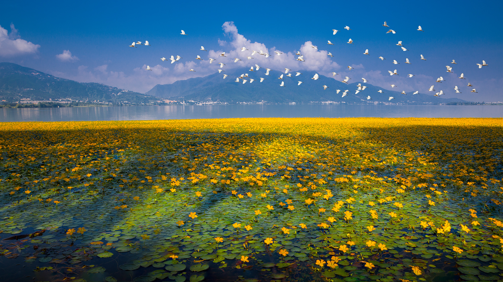 这个季节正是荇菜花盛开的时候。图为西昌邛海美丽的荇菜花。