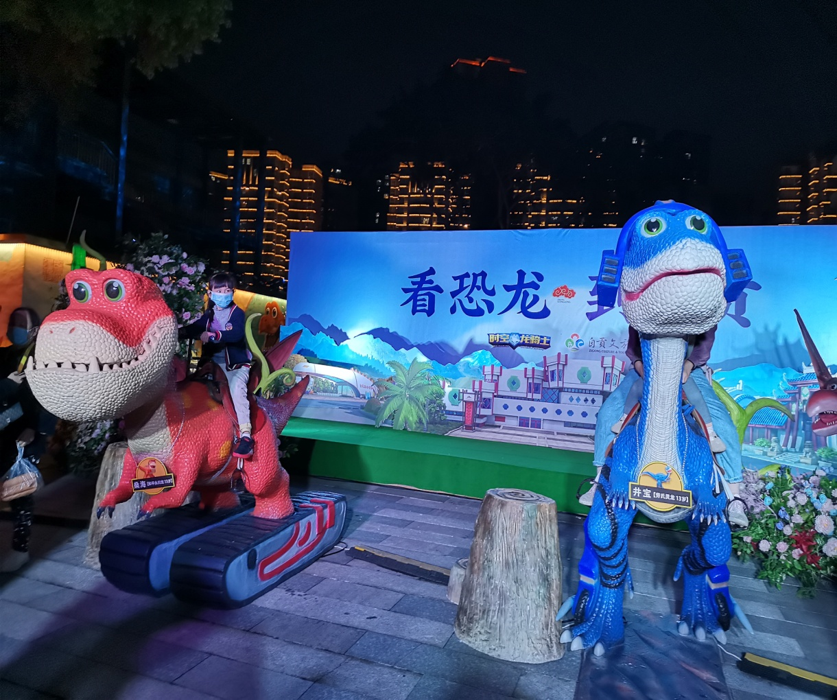 《时空龙骑士》是由自贡文旅投公司与功夫动漫集团联合打造的动画片,多次登陆央视少儿播出,动画片所带来的IP效应越发明显,成为了自贡文旅产业发展的“助推器”,并带动周边产业发展,逐渐形成庞大的IP文创产业链。通过授权合作、签约,衍生产品涵盖服饰、餐饮、食品、家居生活用品、教辅玩具、游乐设施设备等行业。截止目前已授权有100余个品类,涵盖了近200款产品,这些以恐龙IP为核心元素的文创产品,在市场上广泛销售。