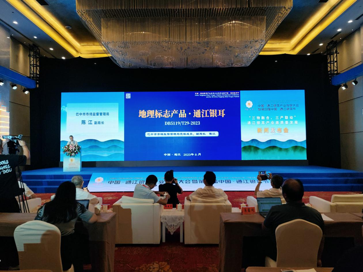 8月9日晚,以“三物融合、三产联动”通江银耳产业高质量发展新闻发布会在长盛大酒店举行,知名专家学者、科研机构和通江县人民政府及相关部门负责人新闻媒体等参加发布会。巴中市市场监督管理局副局长陈江在发布会上发布了《地理标志产品 通江银耳》(DB5119/T29-2023)巴中市地方标准。