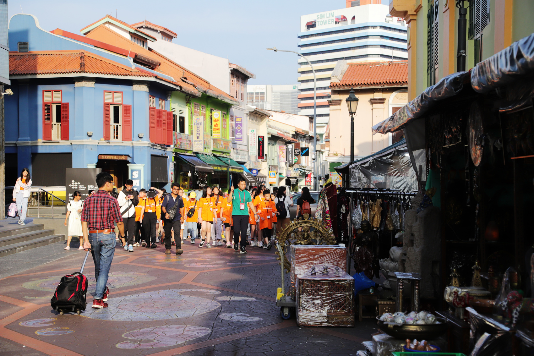 暑期,新加坡街头经常见到来自全球各地的研学团。