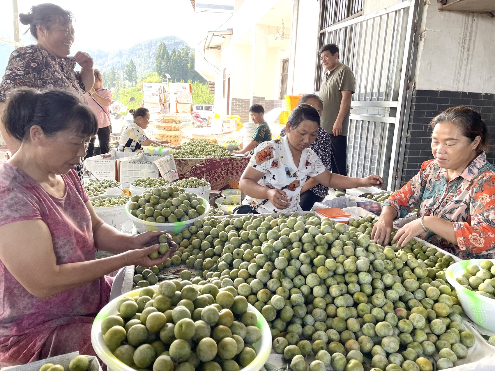 宣汉县庙安镇八庙村村民正在筛分新鲜采摘的青脆李