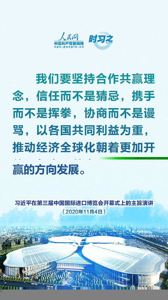 第三届中国国际进口博览会开幕式于11月4日晚在上海举行,国家主席习近平以视频方式发表主旨演讲。人民网·中国共产党新闻网“时习之”栏目制作了10张海报,带您一起回顾习近平这些掷地有声的话语。