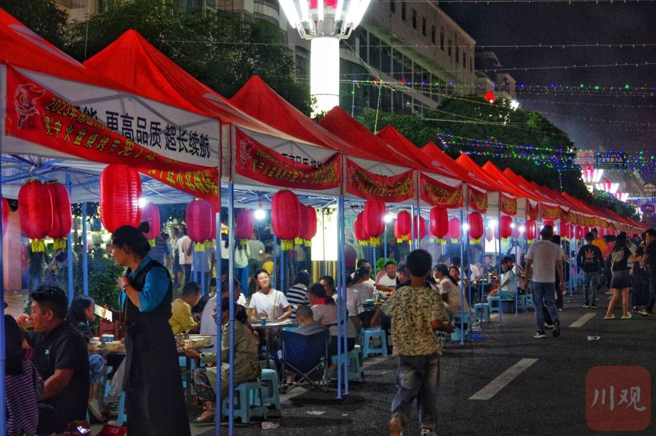8月11日晚,“清凉夏日燃情火把•领略彝风玩转冕宁” 2023年第八届凉山彝族火把节冕宁分会场开幕式暨冕宁火盆烧烤节在冕宁县红军文化广场举行,开幕式后,在冕宁县的交通东路、长征东路、水岸金街举行千人火盆烧烤长桌宴,让游客和当地群众充分体验滋滋作响、回味无穷的冕宁火盆烧烤。