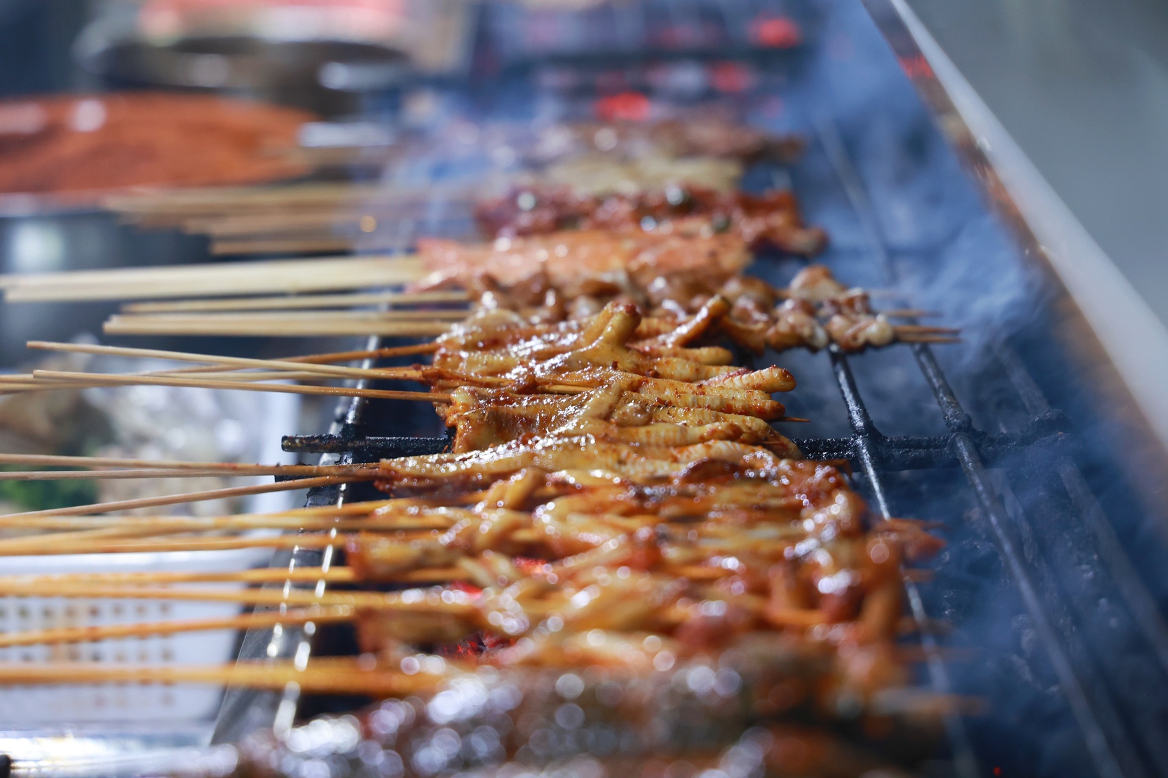 令人惊叹的消费活力,让刘威町的几家烧烤店都座无虚席。招牌生烤鸡爪最具街头气质,基本桌桌必点,烤制时大火翻转,鸡爪皮脂收缩,锁住味道,等到皮脂发亮,刷上辣酱。荤素各点20串,配上刘威町烧烤店的主菜烤鱼、麻辣手撕兔、炭烤生蚝等美味衬托下,夜生活才刚刚开始。