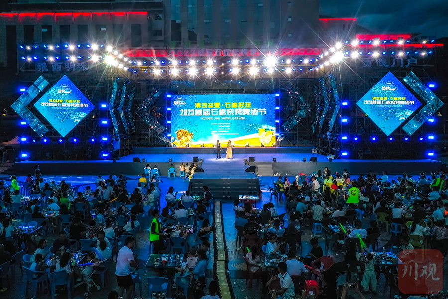 清爽的黄果柑啤酒、热火朝天的铁板烧、香味浓郁的串串烧、火辣奔放的网烧……8月12日晚,雅安石棉县世纪广场内流光溢彩、高朋满座,以“清凉益夏·石棉好玩”为主题的2023石棉首届烧烤啤酒节在此开幕。