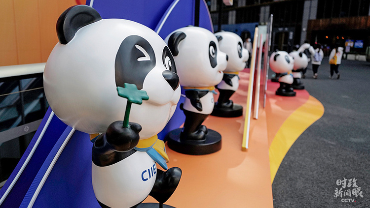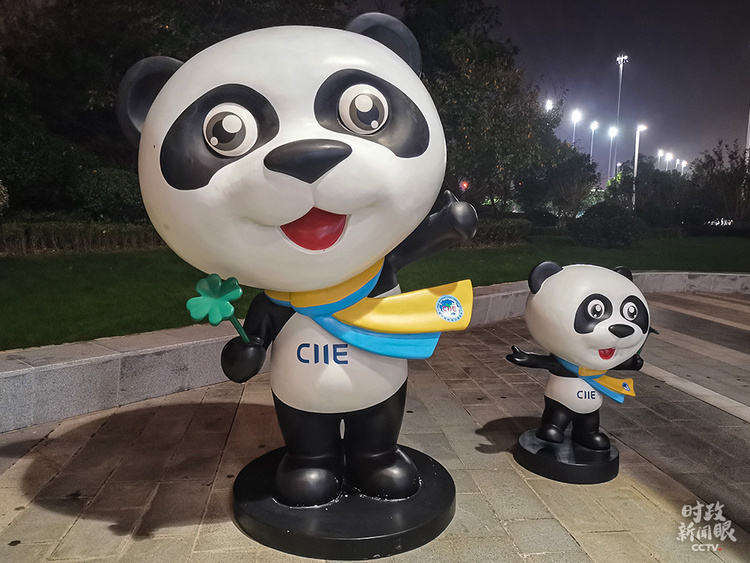 △进博会吉祥物“进宝”是亮眼元素。(总台央视记者王萌萌、国广记者李晋拍摄)