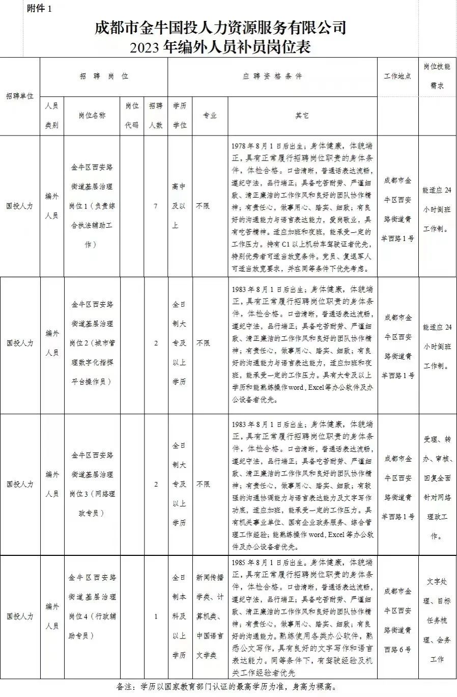 金牛区西安路街道编外工作人员基层治理辅助岗位12名,负责综合执法辅助工作。