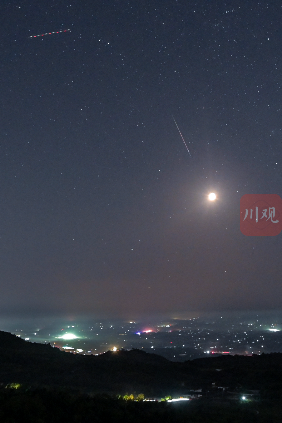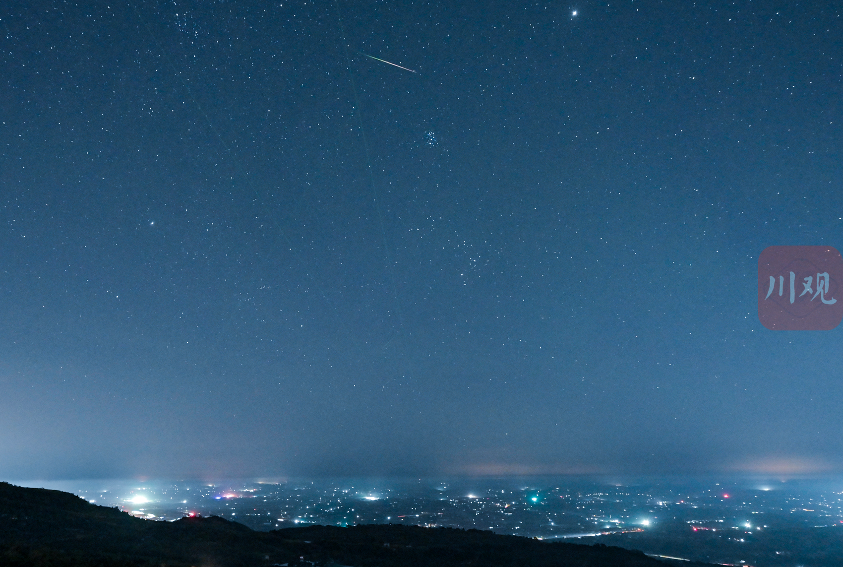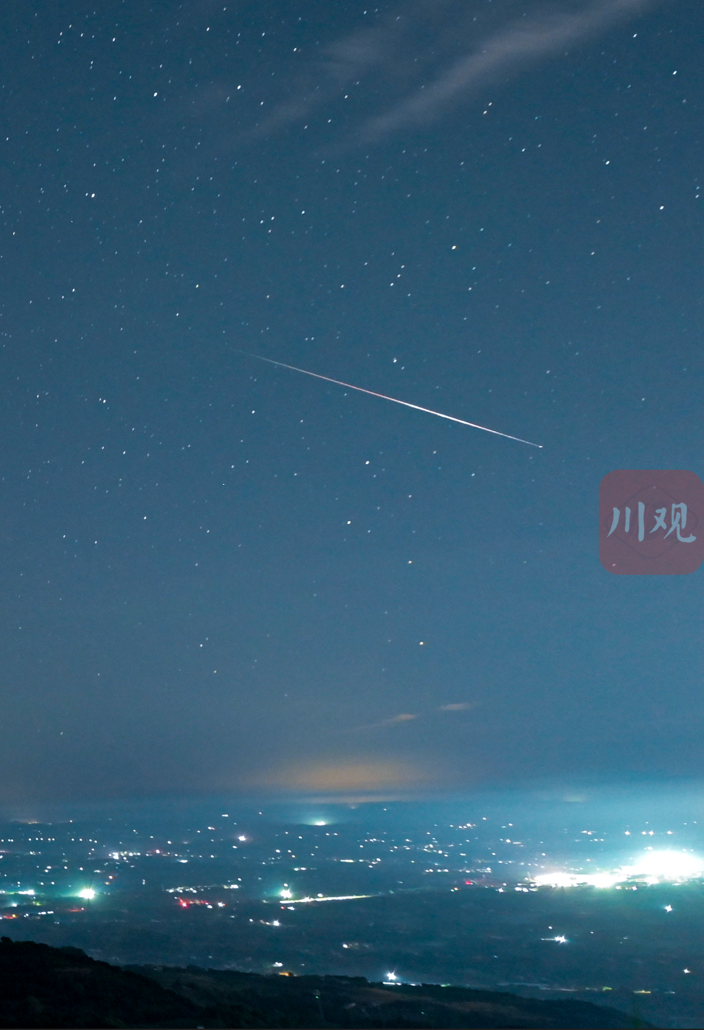 8月13日凌晨,随着成都市区上空的云层散去,漫天繁星显现出来。在成都市金堂县的龚家山观景平台上,许多市民聚集到一起,共同欣赏一年一度的英仙座流星雨光临地球。今年的流星雨非常给力,在不到2个小时的时间内,就有超过30颗肉眼可见的流星从城市上空划过。不少市民表示,这在成都市区见到这么多流星非常难得一见。