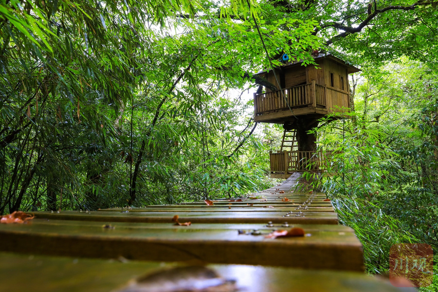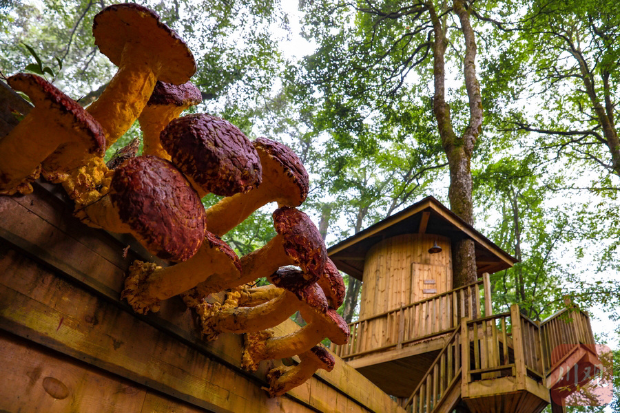 踩着木桩台阶道路走进森林深处,各式各样的“树屋”格外醒目。“学校依托国家公园的自然原生环境而建,最大程度保留了原始地形地貌,”罗旭珂说,“我们希望在顺应自然、尊重自然的理念中,让学员真正深入和探索森林,进而热爱大自然,自觉保护生态环境。”