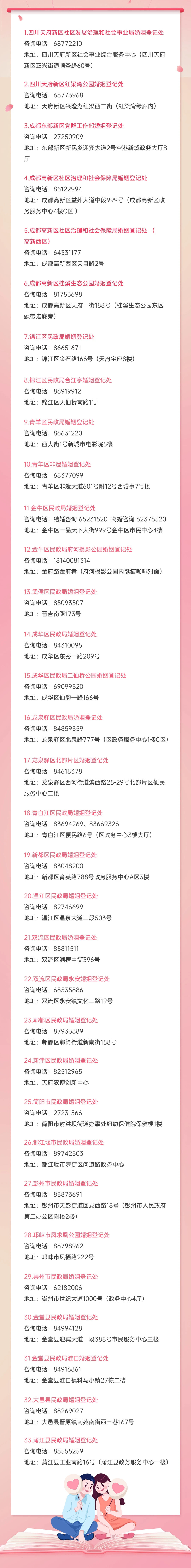 4、各婚姻登记处电话: