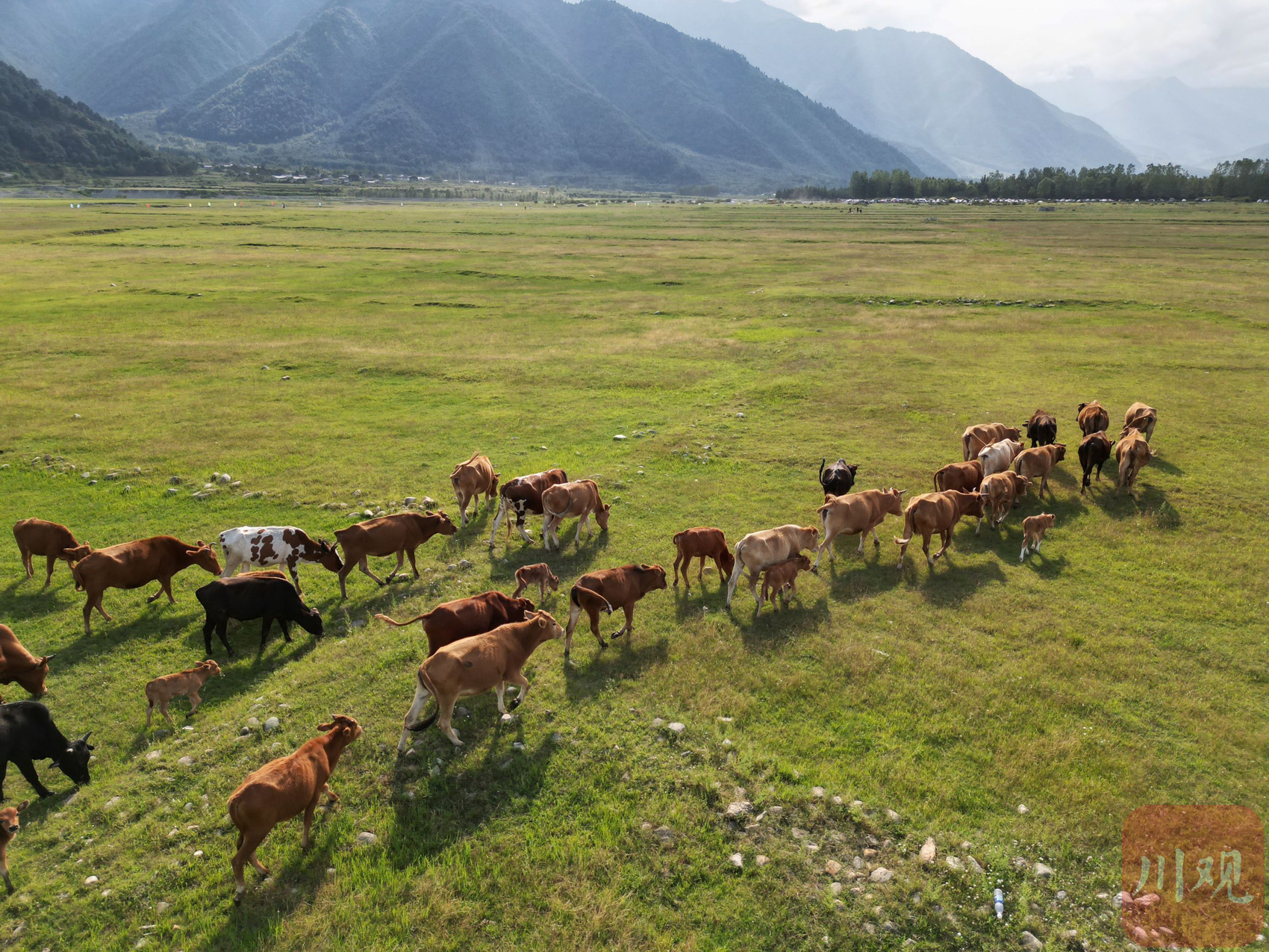海拔2100米,宽阔的碧绿草地连接蓝色的湖面。操作无人机升空,用鹰眼视觉俯瞰,绝美的高原牧场风光更加直观。