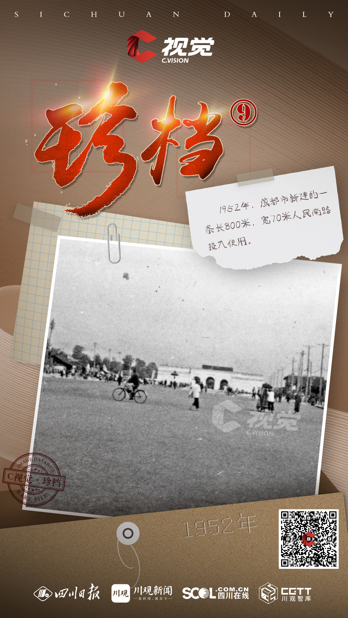 1952年,成都市新建的一条长800米,宽70米人民南路投入使用。