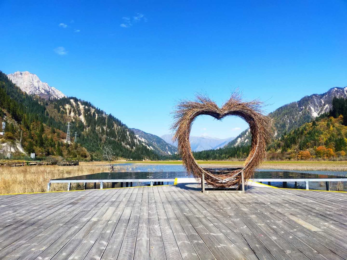 灾后重建中,九寨沟县引进一家公司,在保护生态的前提下,打造了朦胧爱心拱门、幸福转经桶、姻缘幡、七彩栈道、揽山坞、比翼齐飞等网红拍照打卡点,同时配套漂流、丛林穿越等娱乐项目,让这里成为游客体验生态自然与文化旅游融合的好去处。这也是九寨沟县重点打造包装的又一个“秀恩爱”的新景点。