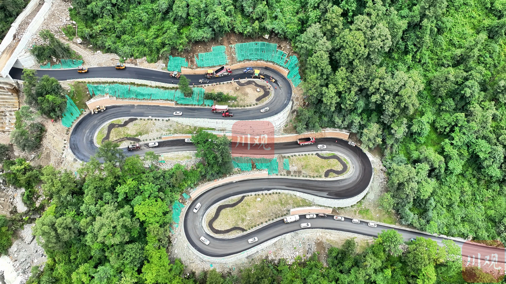 随着道路的基本修复完成,多个路段正进行沥青路面铺筑。俯瞰视角,黑色的旅游公路盘山而上,犹如一条巨蟒逶迤山间。据介绍,海螺沟景区道路不是简单重建,而是恢复提升,全线路基全部拓宽至7.5米,并铺设沥青混凝土路面,按三级公路标准建设,部分急弯陡坡段进行了改善,增设了观景台、护栏安全等级,行车舒适度大为提升。