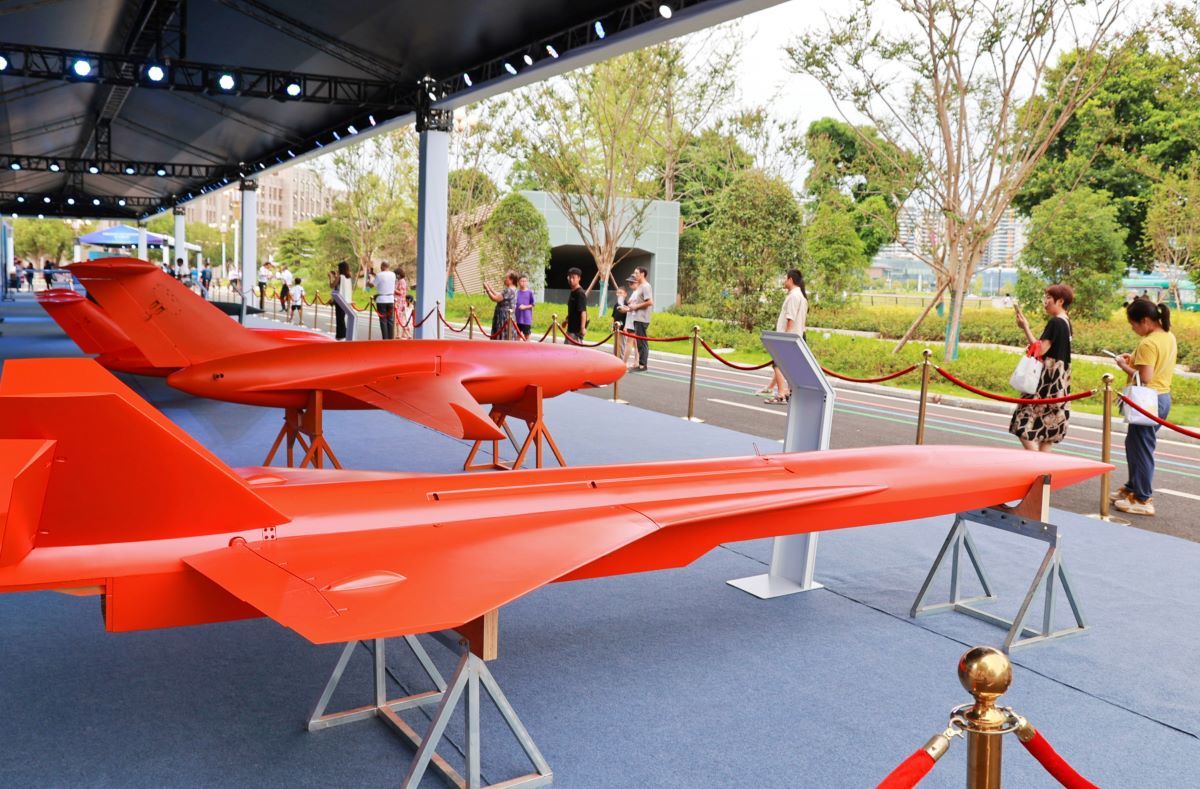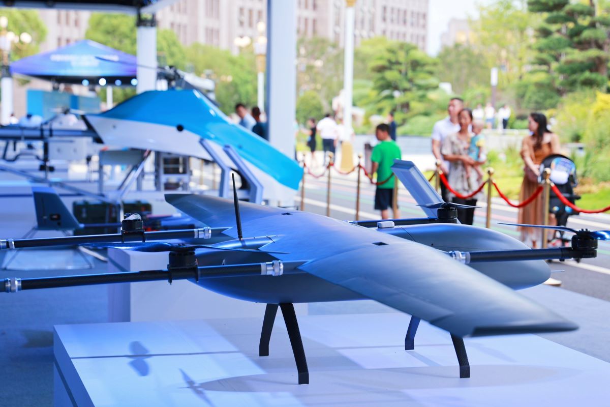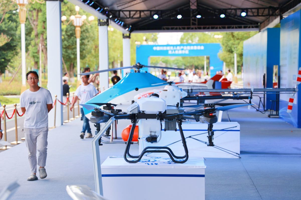 中国科技城无人机产业投资恳谈会活动现场的无人机展示区。陈冬冬 摄