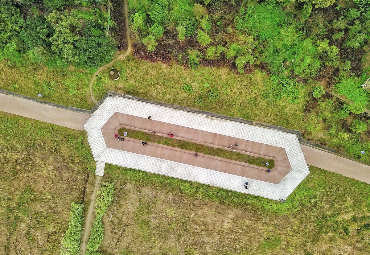 周边居民在老鹰丘湿地公园内看风景。周梦颖摄