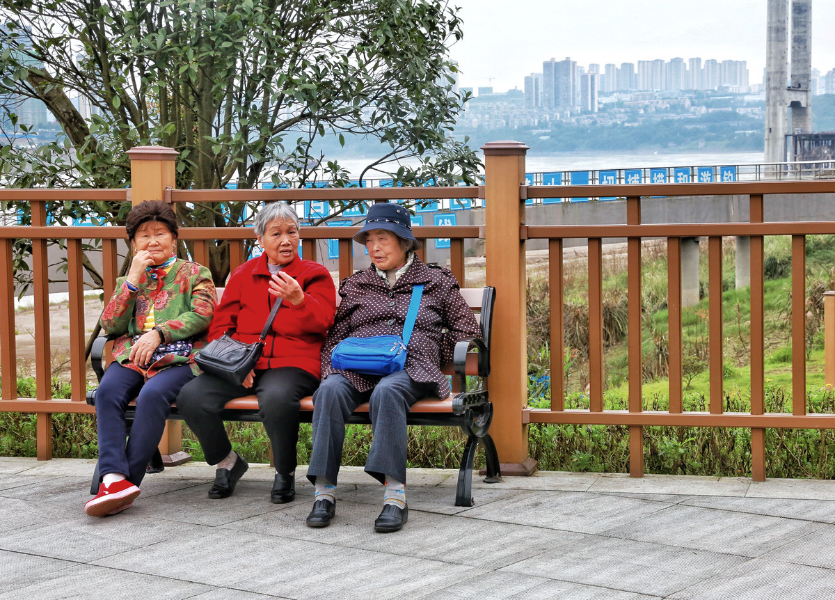 周边居民在老鹰丘湿地公园内聊天。周梦颖摄