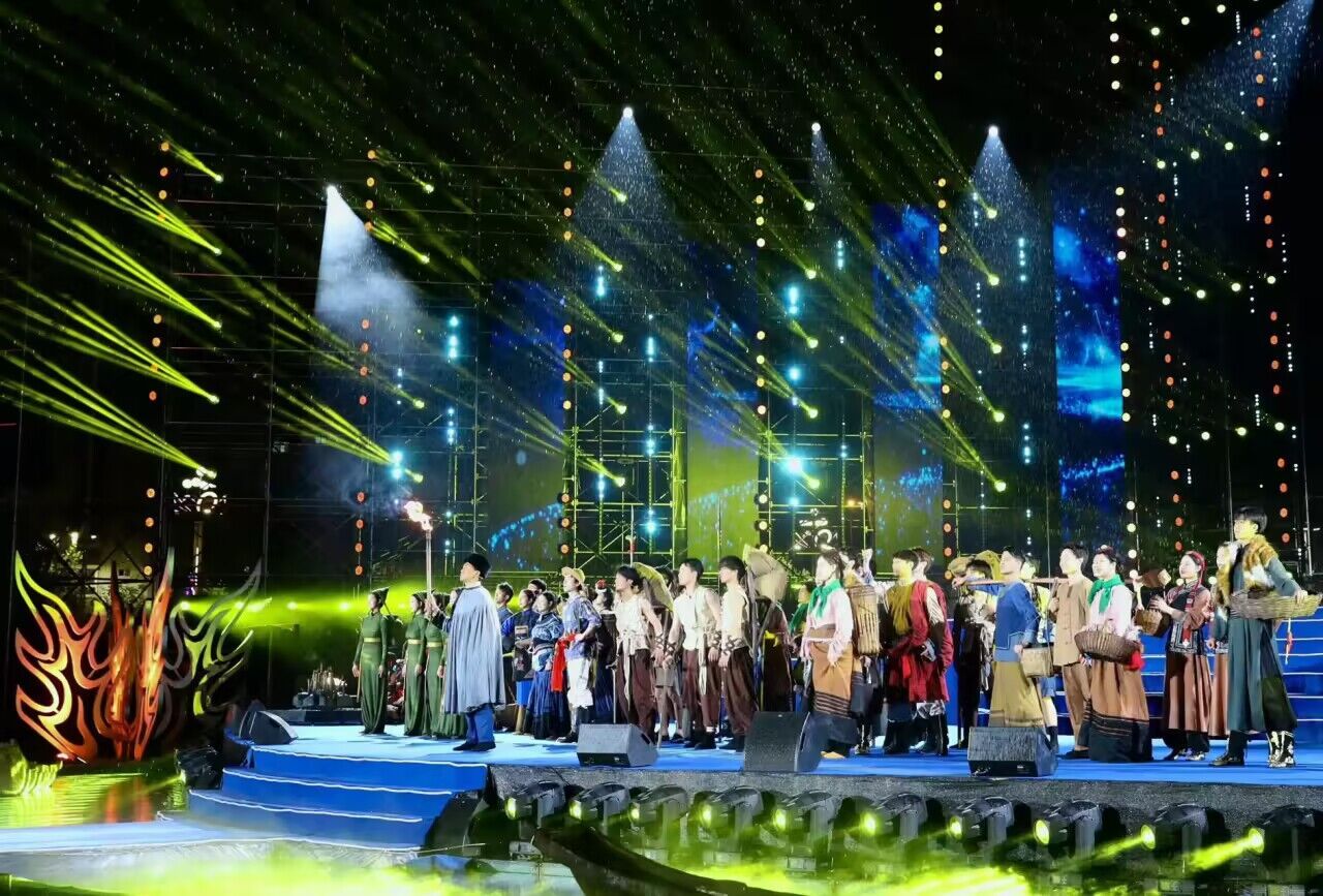 活动现场,华丽的舞台、精美的灯光,一场盛大的“乡村晚会”悄然而至。在大家的期待中,一场场精彩演出轮番上演。戏剧《古道千年》、歌舞剧《薪火相传》、歌曲《阿芝谣》等精彩纷呈的节目,衬托着作为古代南方丝绸之路重要节点的盐源的文化底色。