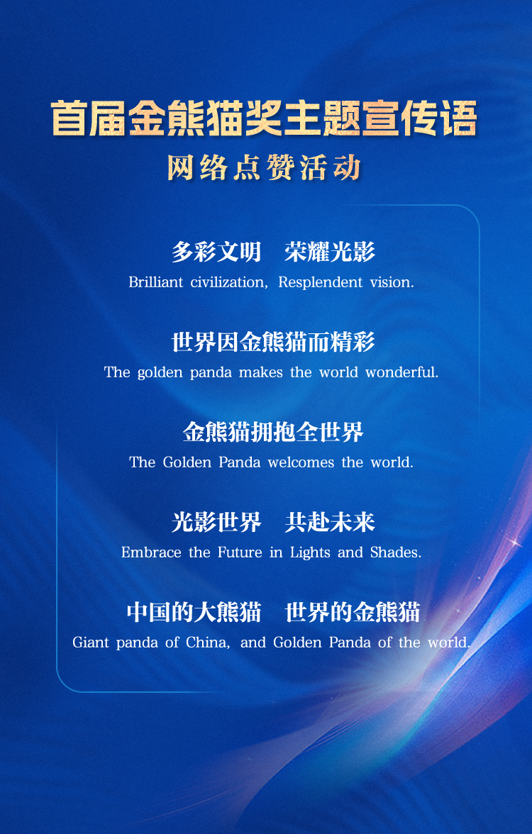 今年9月,首届金熊猫奖将在四川成都举行。日前,5条候选主题宣传语出炉。