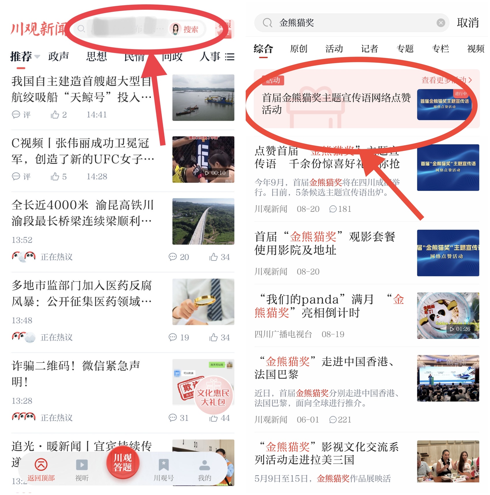 方式三:在川观新闻客户端首页顶部搜索框输入“金熊猫奖”,点击活动链接即可参与。