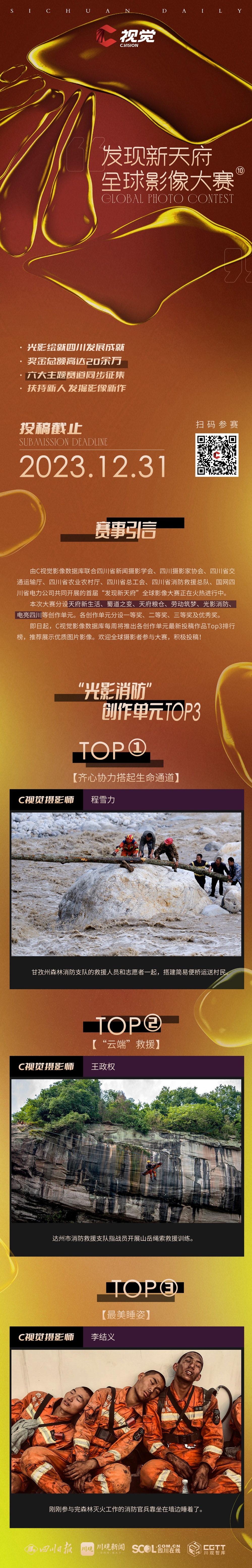 由C视觉影像数据库联合四川省新闻摄影学会、四川摄影家协会、四川省交通运输厅、四川省农业农村厅、四川省总工会、四川省消防救援总队、国网四川省电力公司共同开展的首届“发现新天府”全球影像大赛 (以下简称大赛) 正在火热进行中。