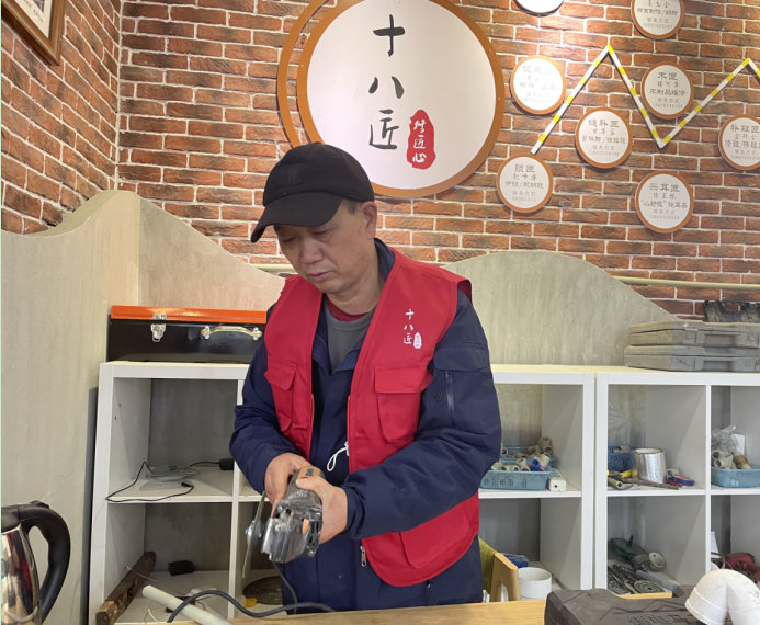 “我这门缝纫手艺能为居民们提供便利,我很开心。”有着50多年的匠龄甘师傅说,原本打算退休的他,在社区活动中得知居民有此需求,主动成为了十八匠志愿队里的第一批匠人,走上了“再就业”之路。