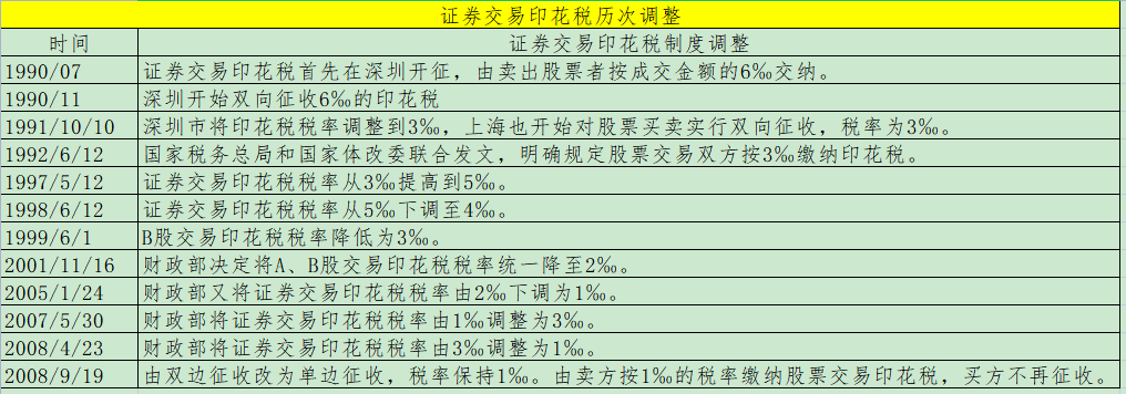 证券交易印花税历次调整情况